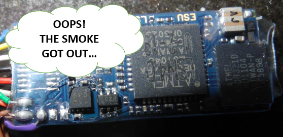 Please understand, DCC products are made of components that are subject to the invisible forces of electricity as defined by Ohms Law (V = I x R) and can be easily damaged without knowledge or intent by the forces of ESD (Electro Static Discharge).
